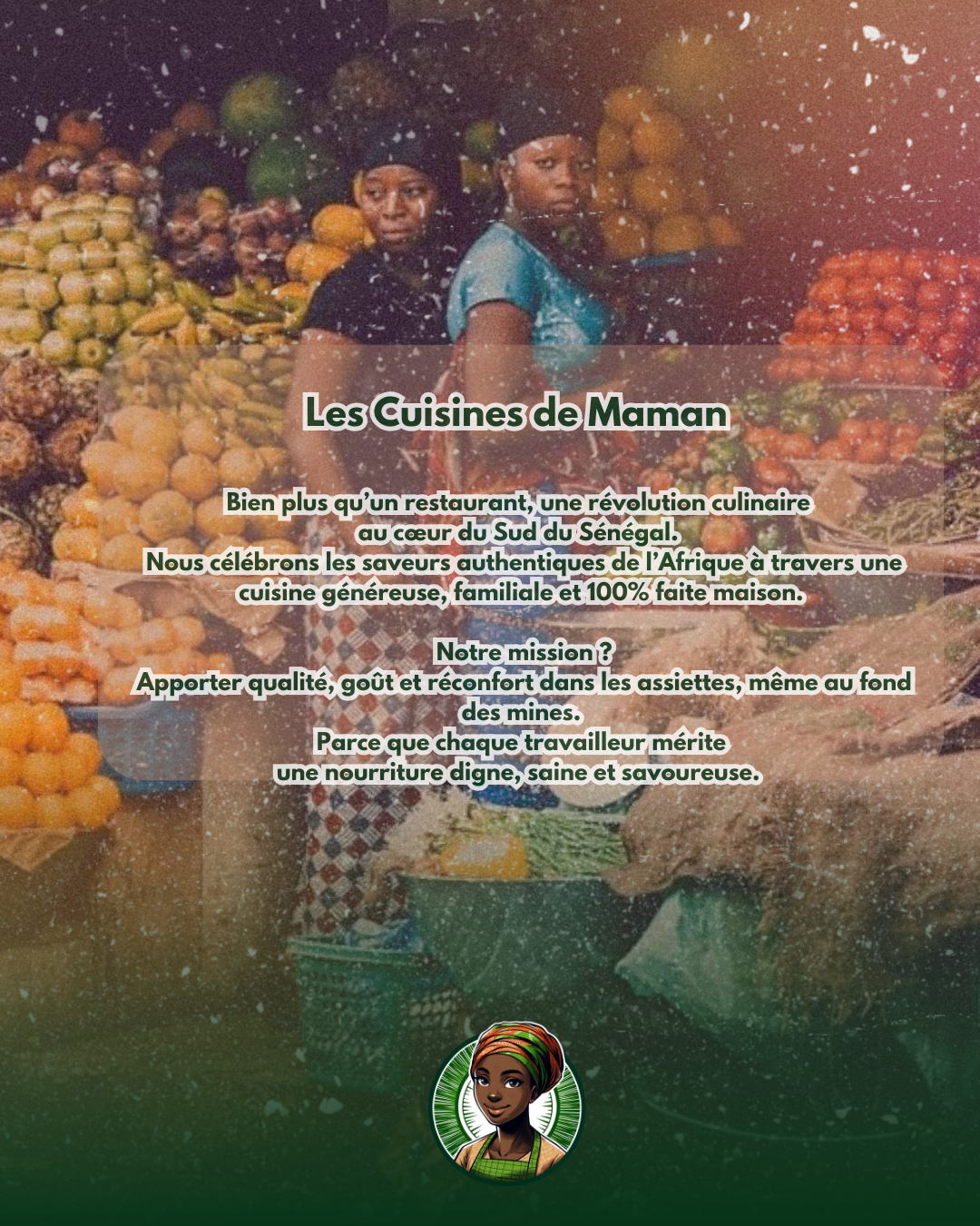 Chaque année, nous retournons au Sénégal pour renouer avec nos sources, découvrir de nouvelles recettes et soutenir les producteurs locaux. Notre mission ? Vous offrir une expérience gustative vraie et chaleureuse, où les épices dansent et l’hospitalité africaine rayonne. Et Demain ? De notre humble début, nous avons grandi pour devenir un lieu de rendez-vous incontournable. Prochaine étape ? Un espace dédié aux délices de l’Afrique de l’Ouest – stay tuned ! Venez goûter à l’Afrique chez LES CUISINES DE MAMAN : où chaque repas est un voyage.